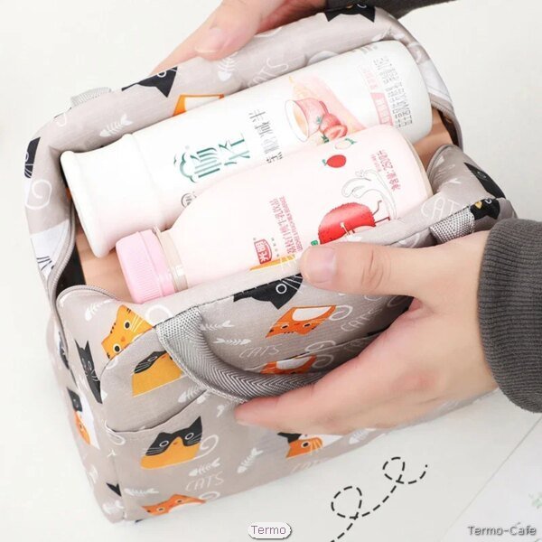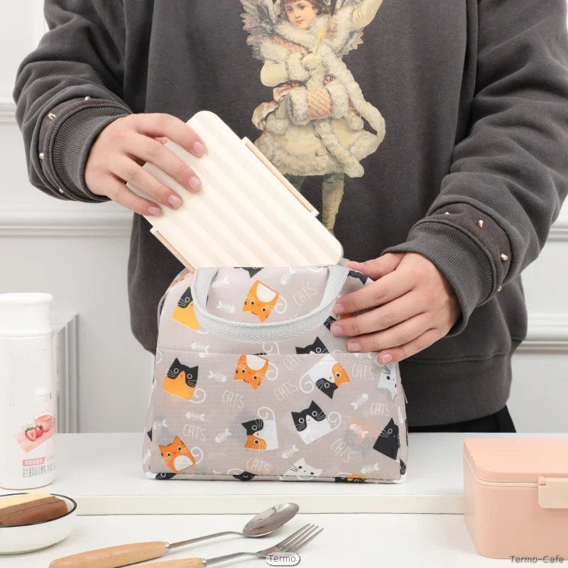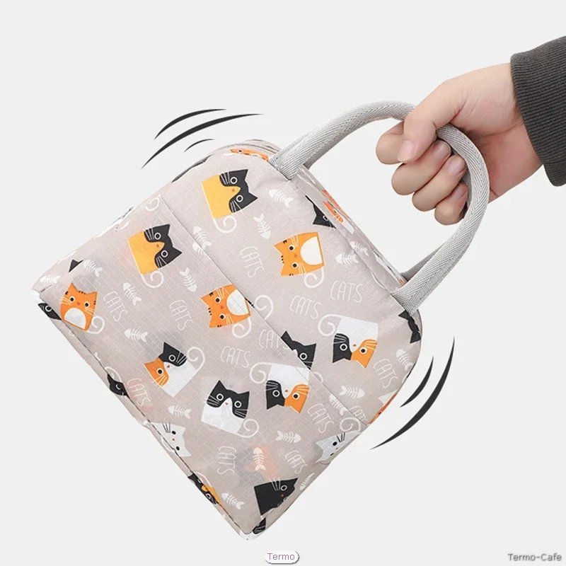 Bolsa de almuerzo térmica para niños con diseño colorido, aislamiento eficaz y asas para fácil transporte.