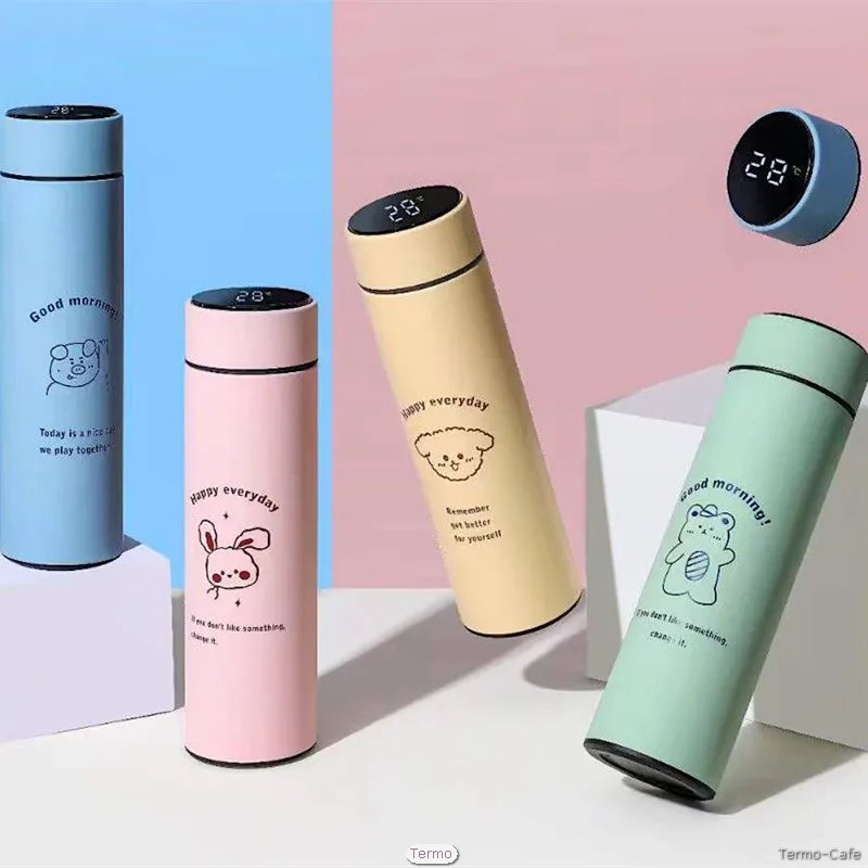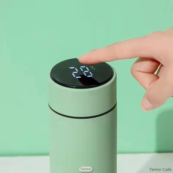 Botella térmica inteligente con pantalla de temperatura, diseño portátil y elegante, ideal para mantener tus bebidas a la temperatura perfecta.