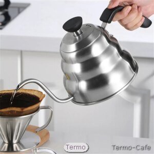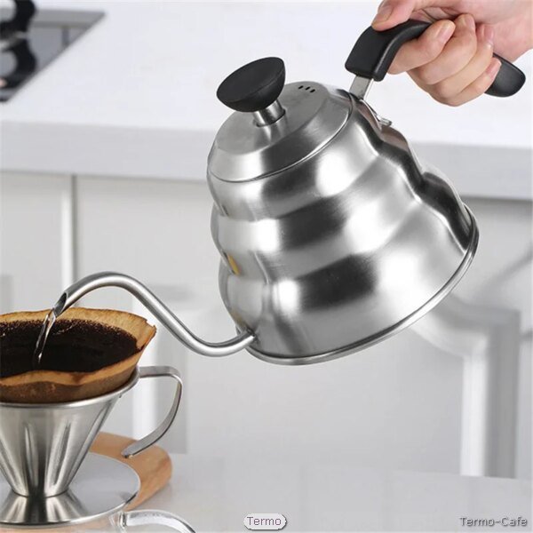Cafetera inglesa estilo vintage de acero inoxidable. Ideal para los amantes del café filtrado a goteo. Esta cafetera es un a hervidora de agua que también sirve para preparar infusiones y calentar el agua para cocinar.