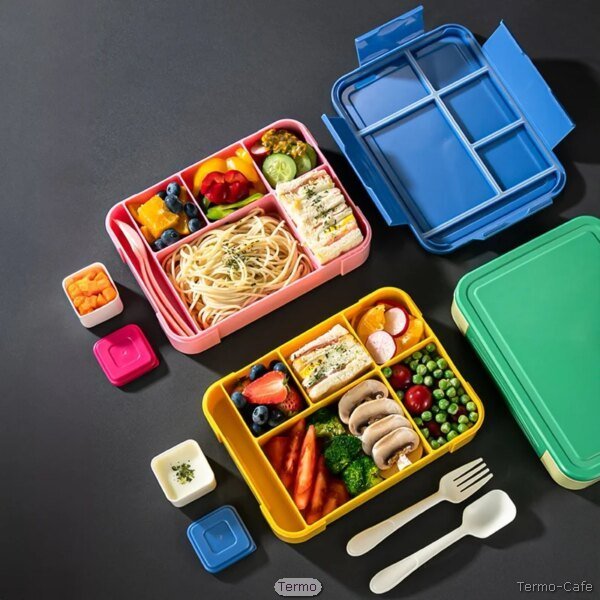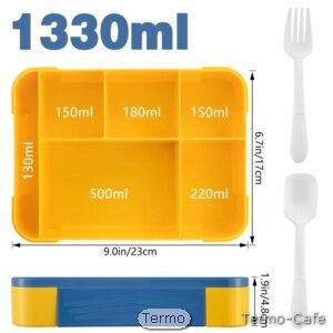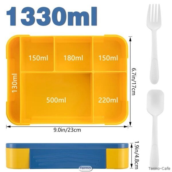 Fiambrera Bento Box 1330 ml con Compartimentos y Cubiertos