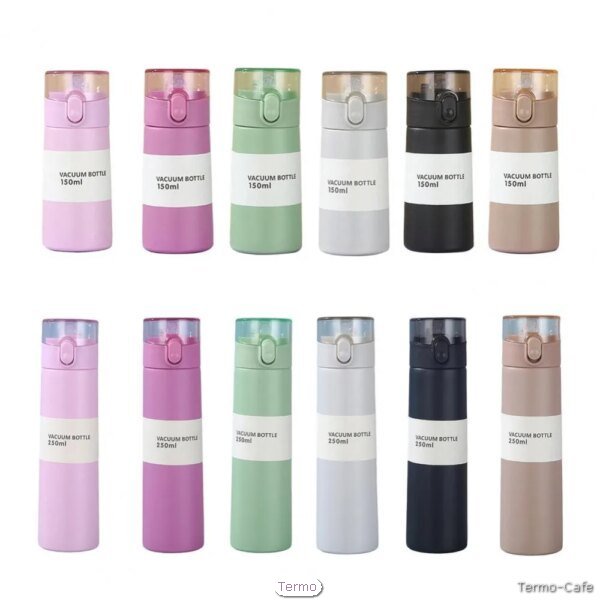 Este mini termo de acero inoxidable es estrecho y alto, por lo que cabe en tu bolsillo, para tenerlo a mano en cualquier momento. Lo tienes en dos medidas diferentes grande y chico 150 ml y 250 ml. Y en 6 colores, ideal para toda la familia y no confundirse.