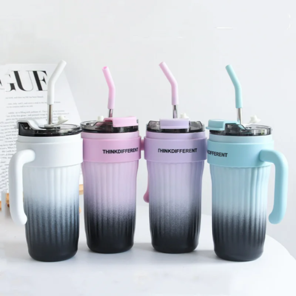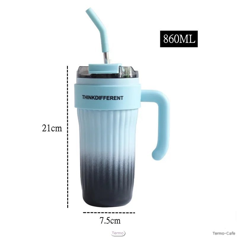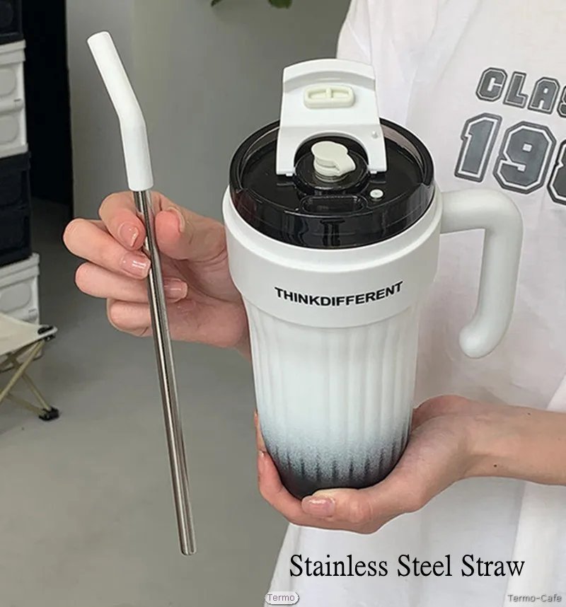 Mug Térmico ThinkDifferent – Con Asa y Pajita Inox