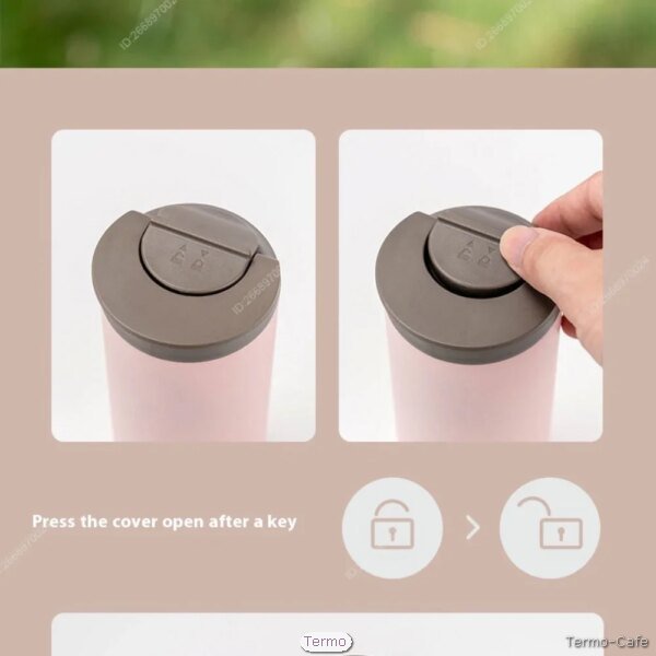 El cierre con tapa de seguridad antifugas garantiza un transporte sin preocupaciones. Puedes guardarlo incluso boca abajo en tu bolso sin riesgo de derrames. Su sistema de apertura rápida con botón facilita el uso con una sola mano, ideal mientras caminas o conduces.