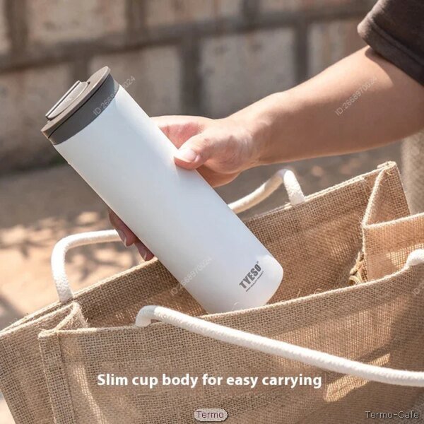 El Termo TYESO Slim 500ml está diseñado para los amantes del café que buscan estilo y rendimiento en un solo producto. Su forma delgada cabe en cualquier bolso, su aislamiento de doble pared conserva el calor, y su tapa antifugas lo hace seguro para llevarlo a diario.